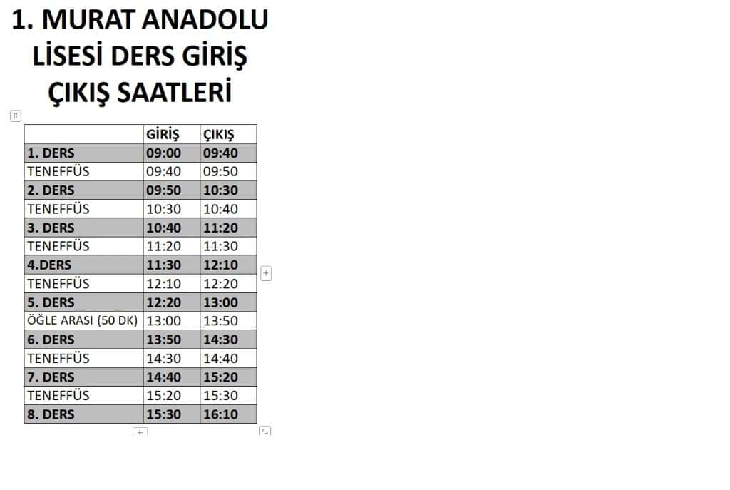 2025/2026 EĞİTİM-ÖĞRETİM YILI GİRİŞ ÇIKIŞ SAATLERİ